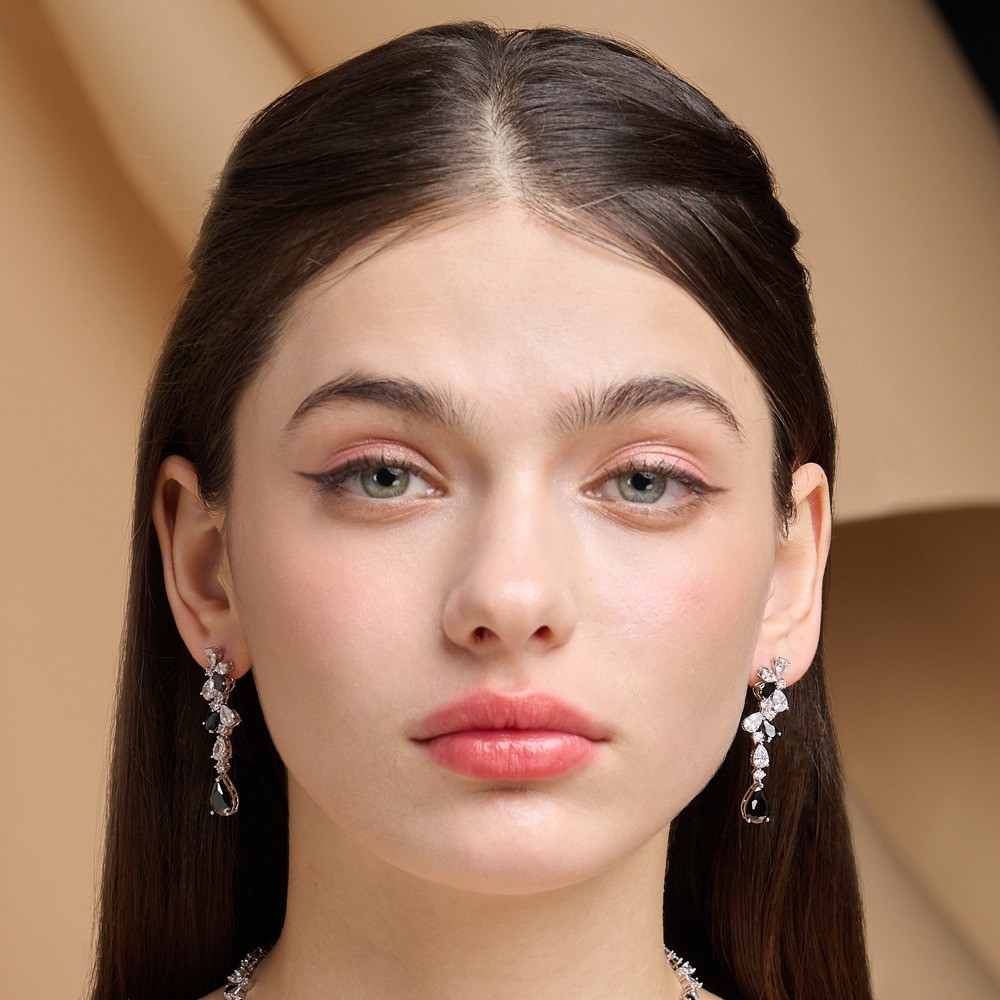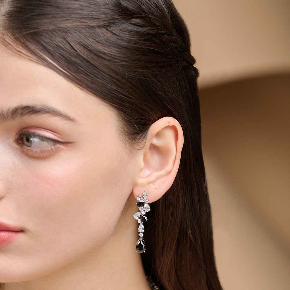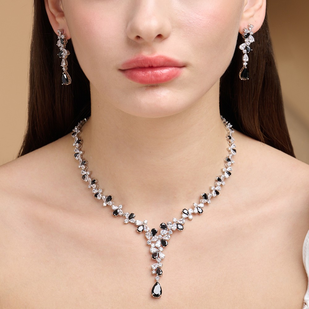 黑白鋯石項鍊耳環套組21-15490