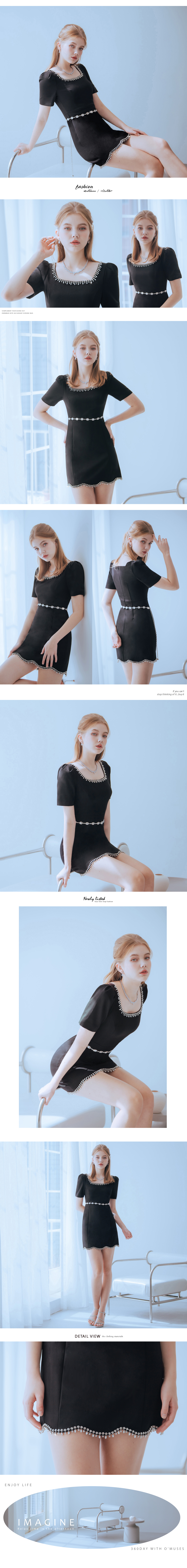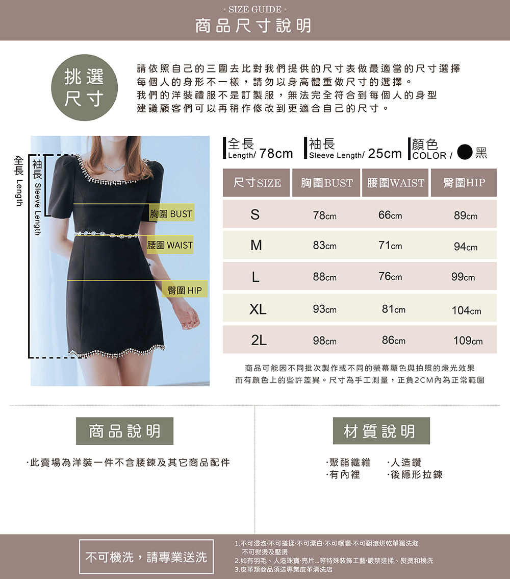 重工藝方領亮鑽黑色短洋裝禮服37-7351
