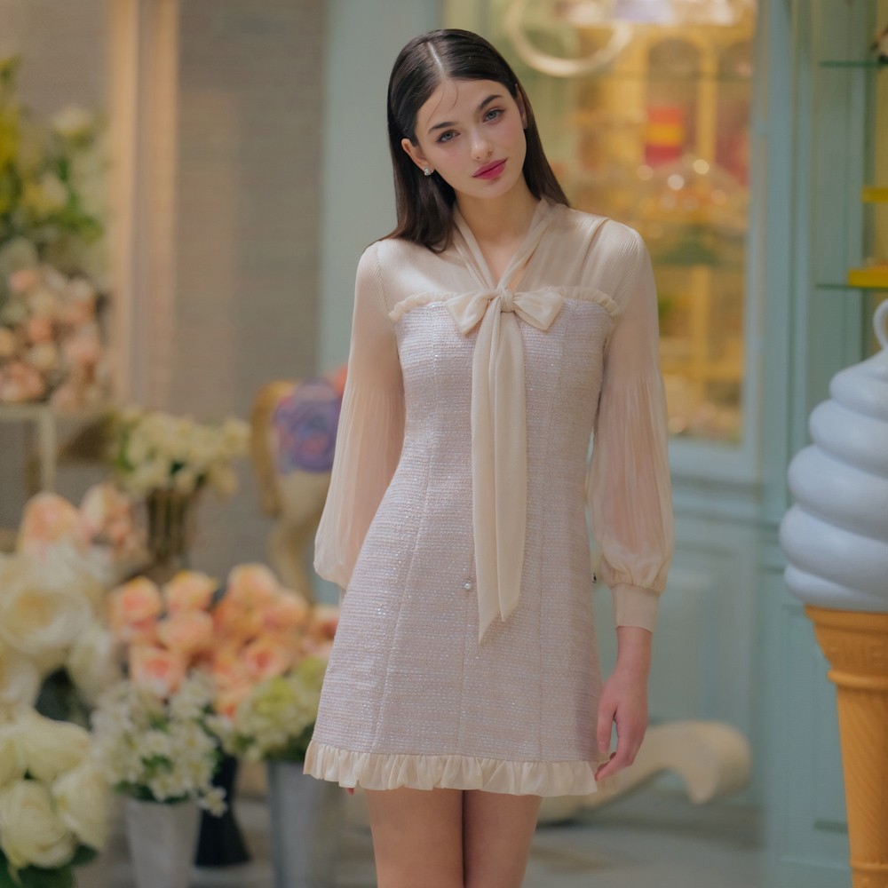 小香風亮片杏色短洋裝37-32015