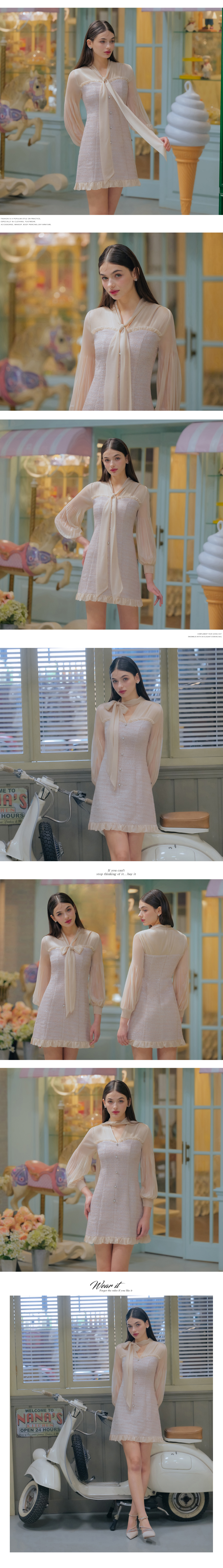 流蘇珍珠領杏色短洋裝28-X297