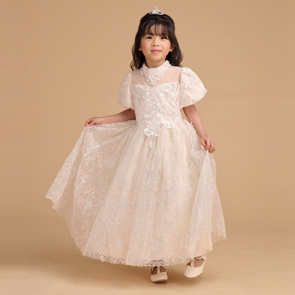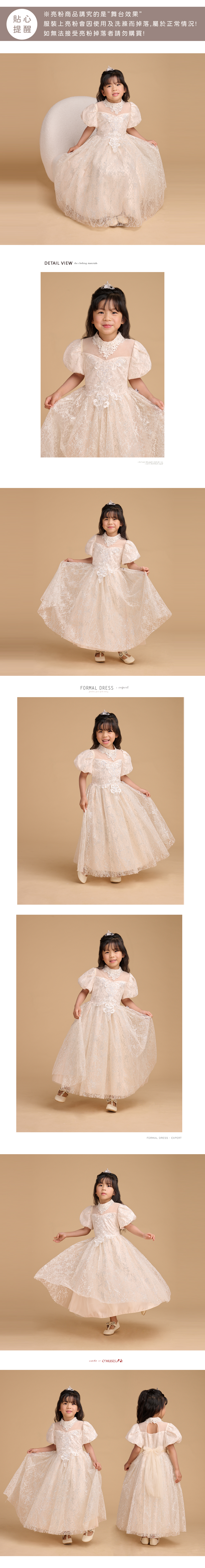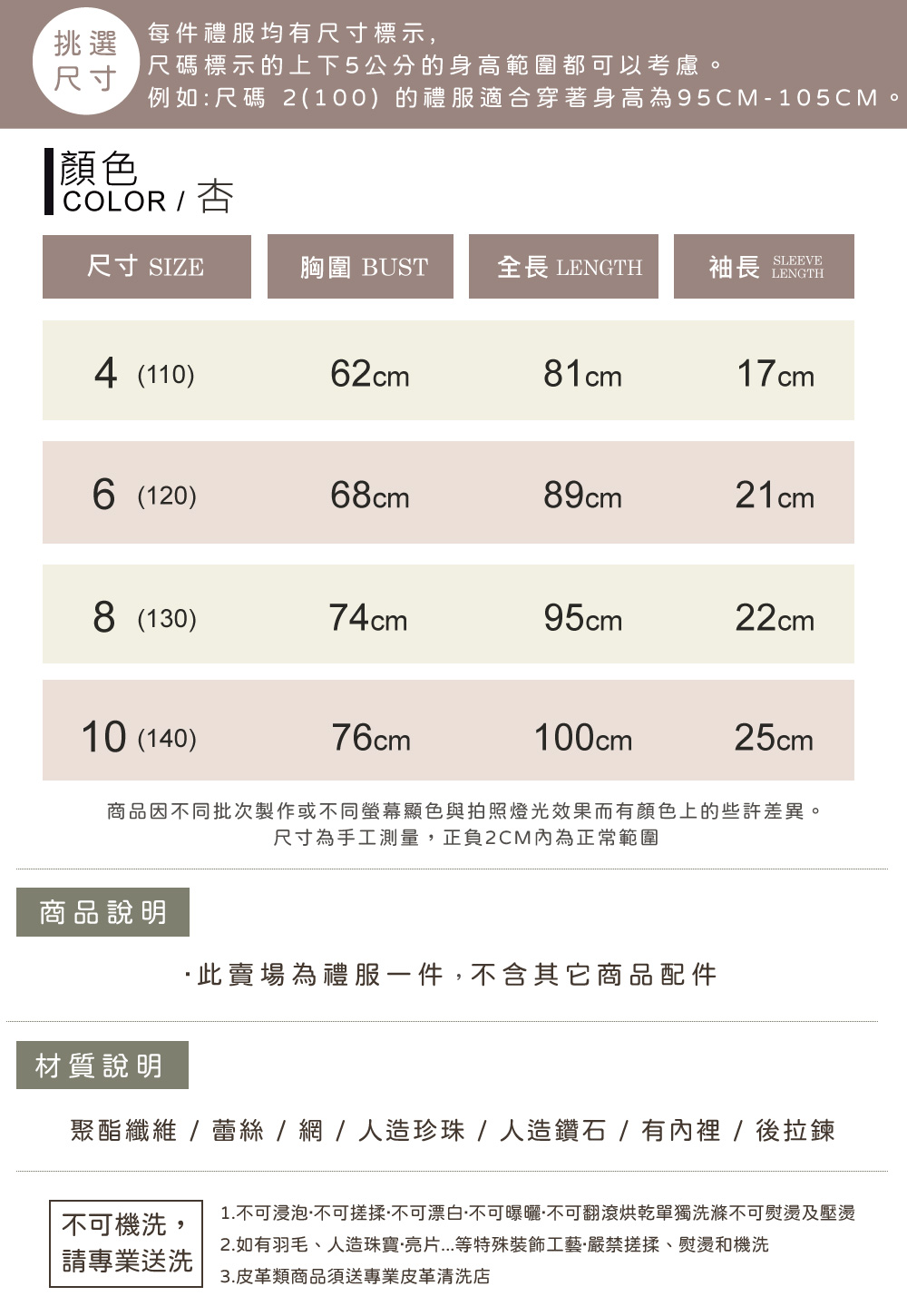刺繡金蔥亮粉杏色女童花童禮服58-52619