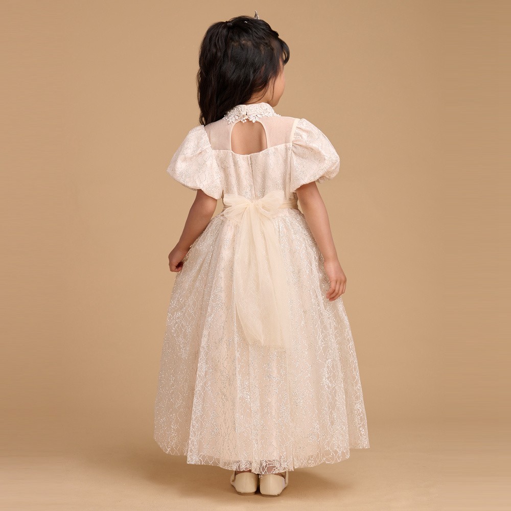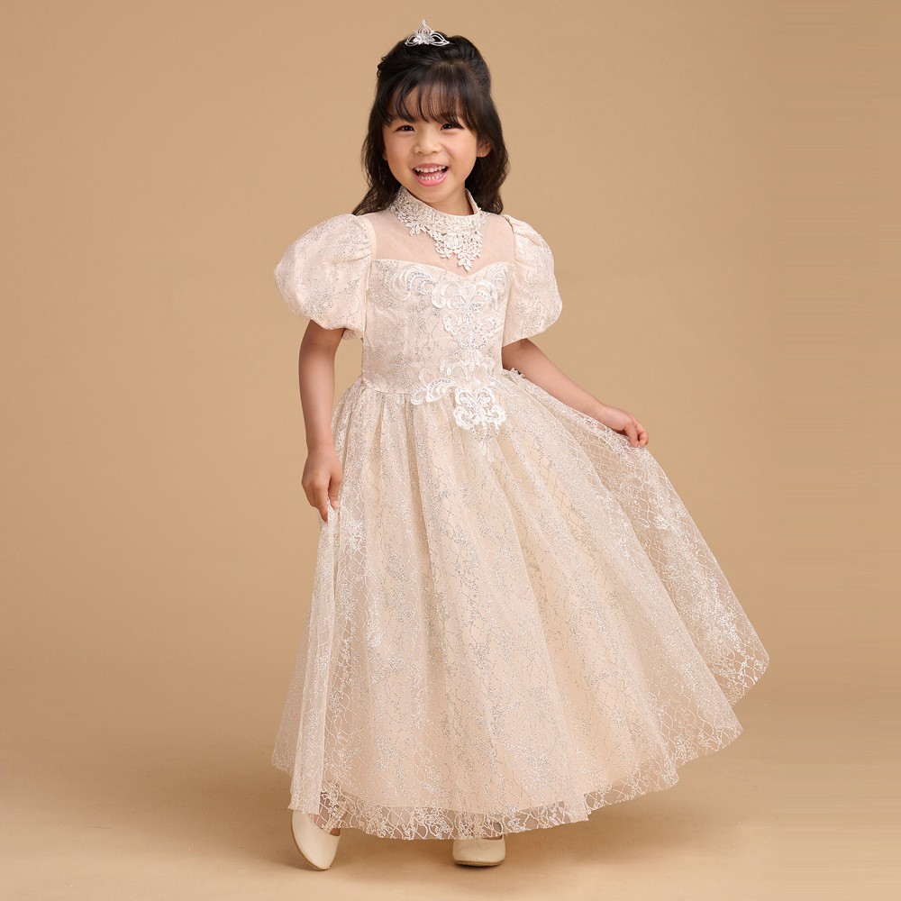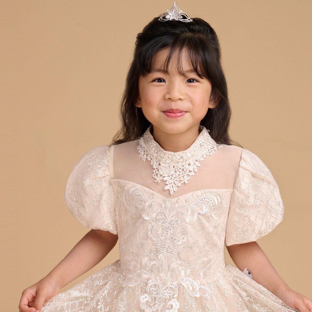 刺繡金蔥亮粉杏色女童花童禮服58-52619