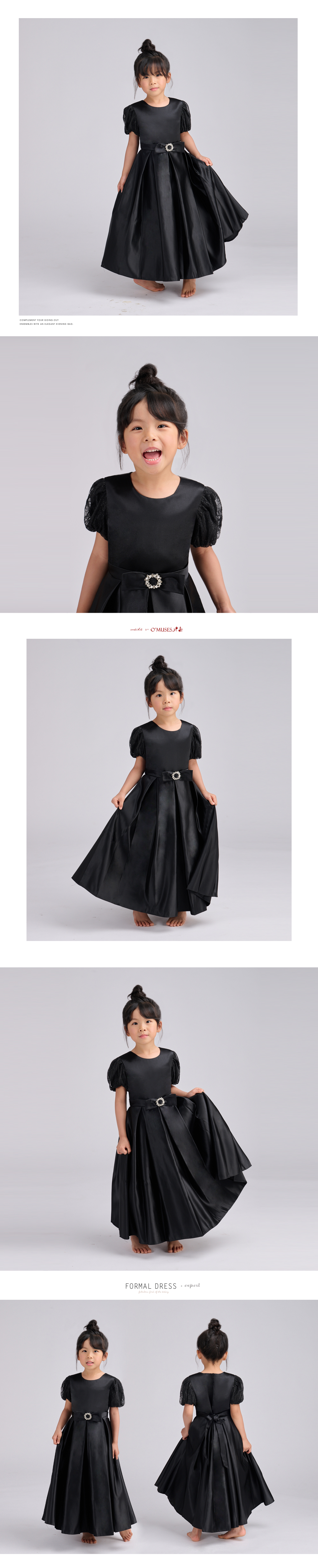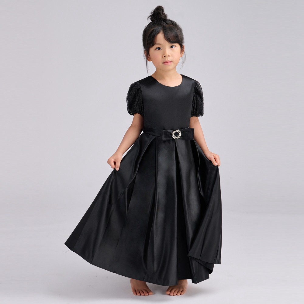 蕾絲袖蝴蝶結黑色女童花童禮服58-723A43-1