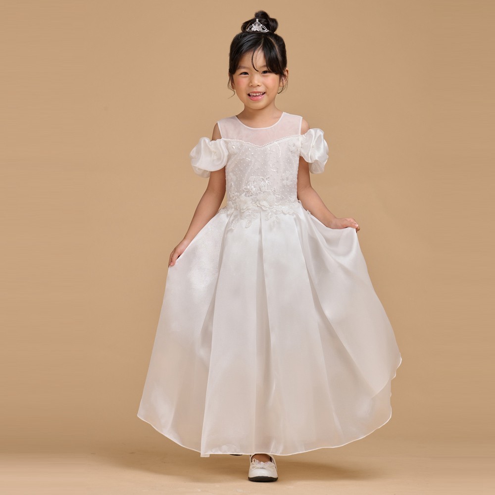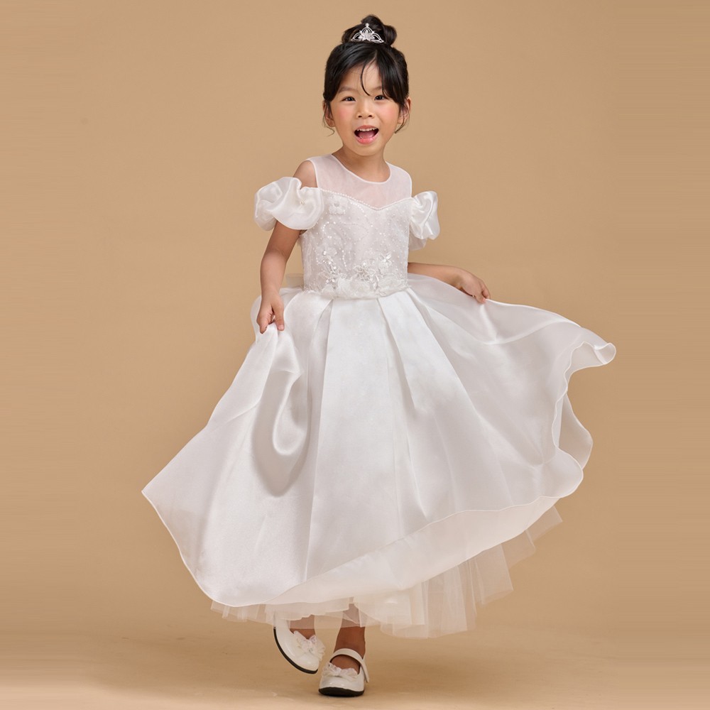 雲朵肩紗白色女童花童禮服58-525203