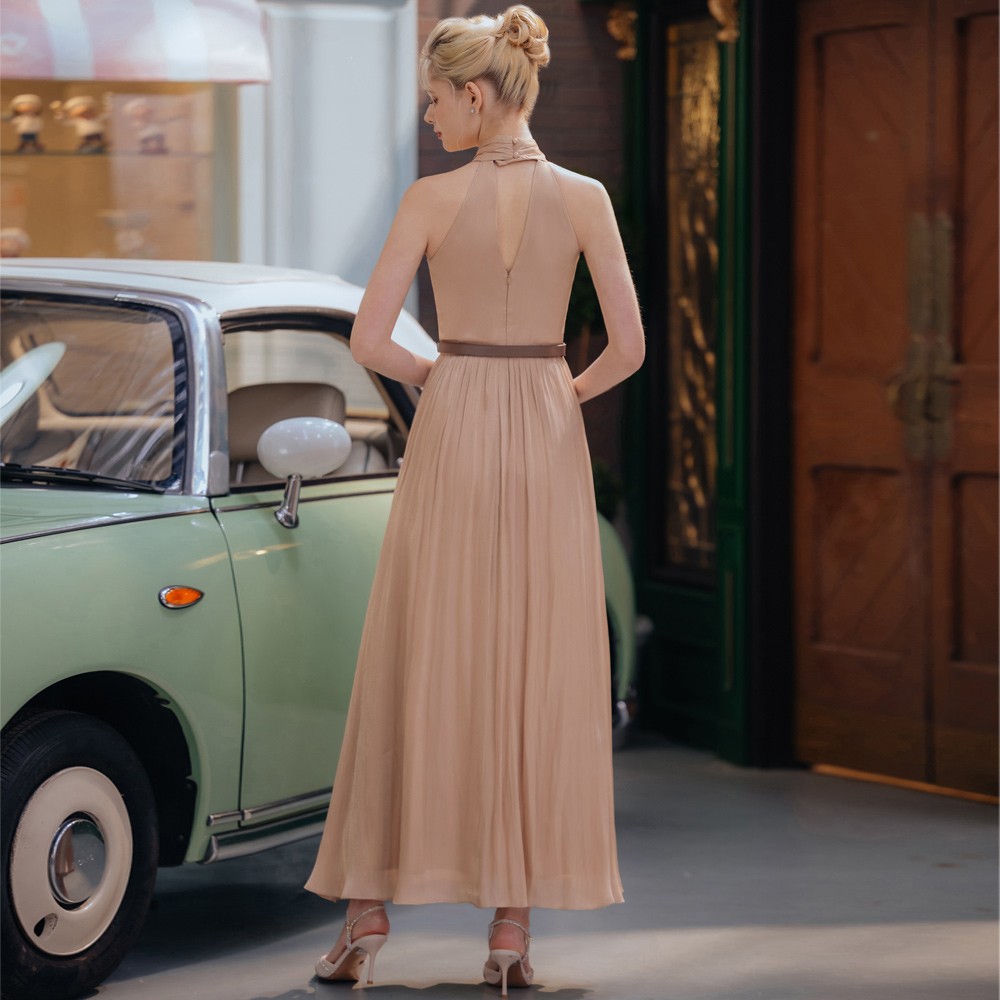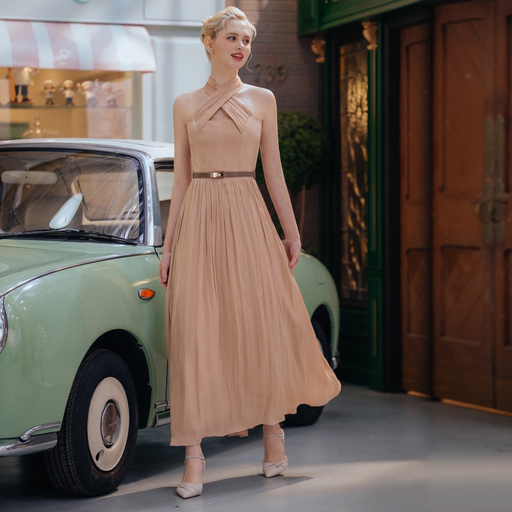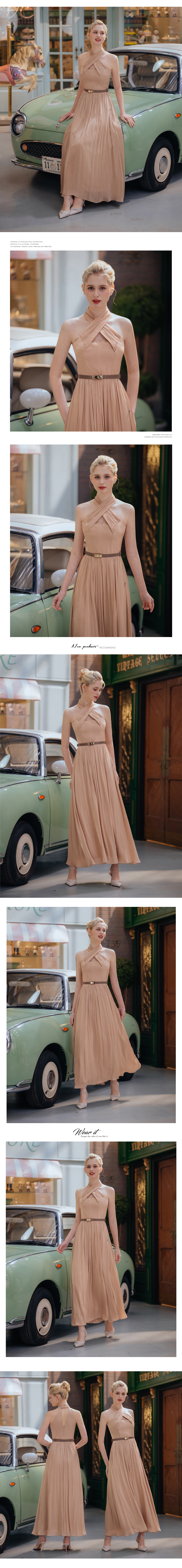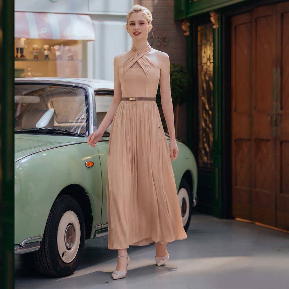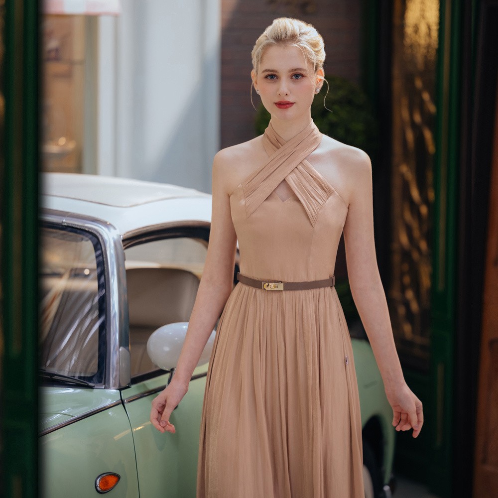 交叉削肩杏色女神長禮服29-31582