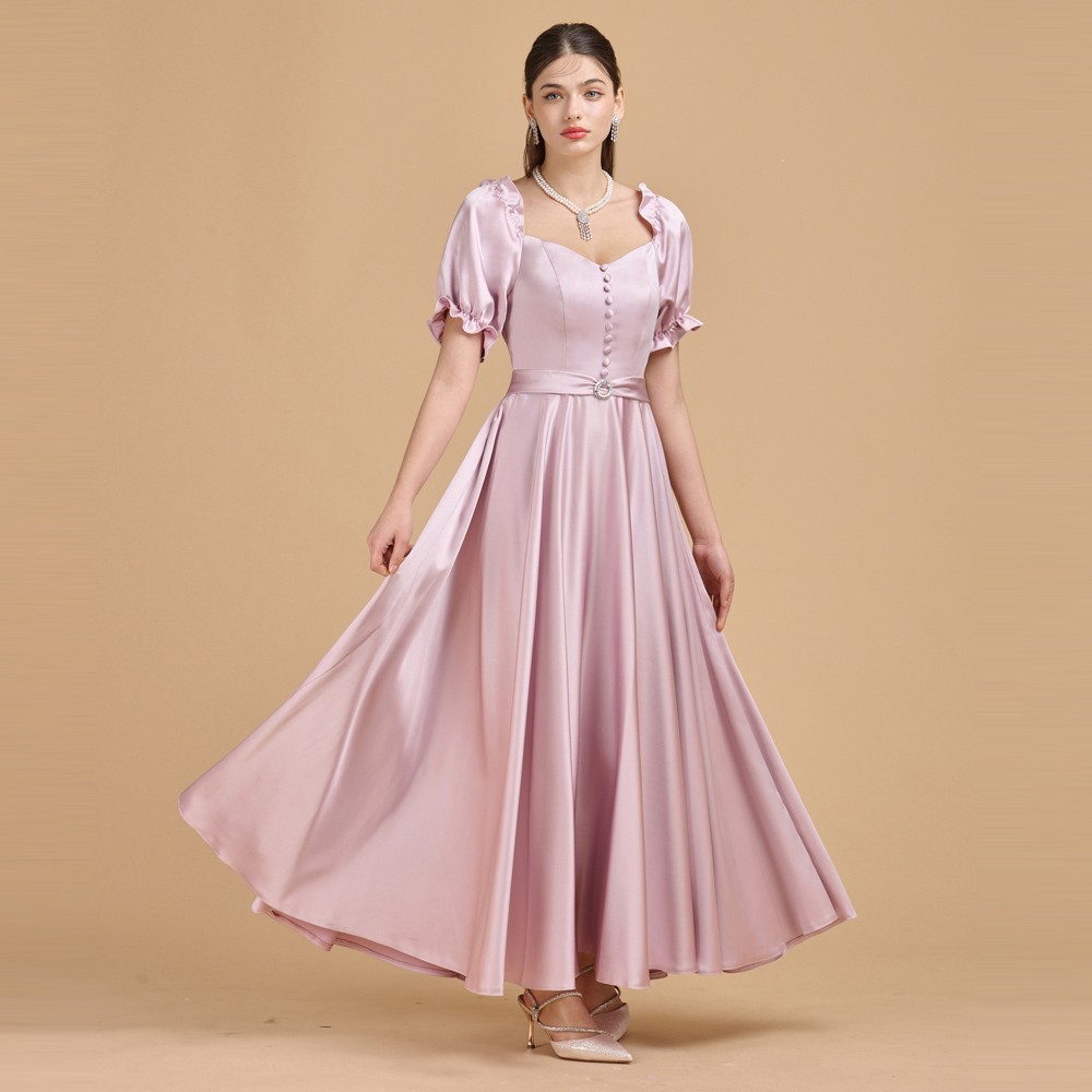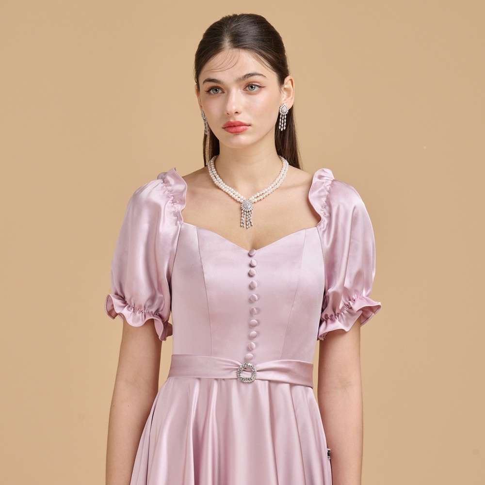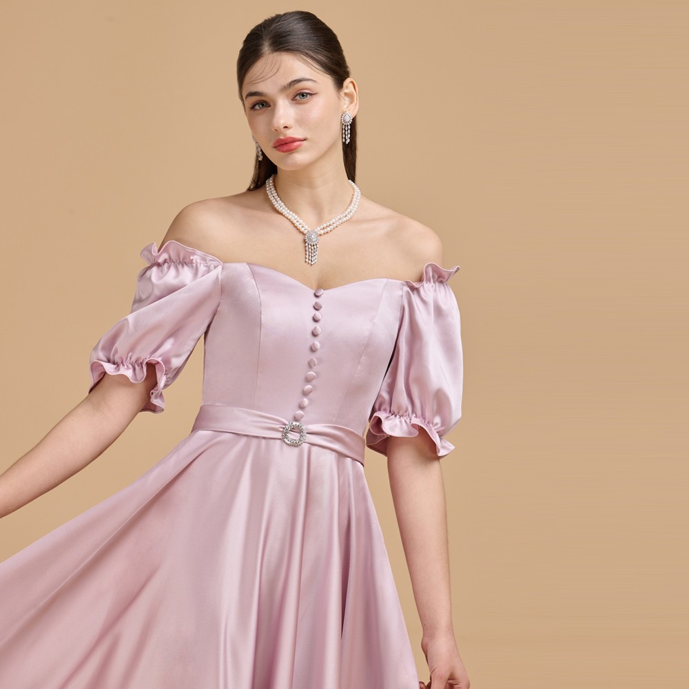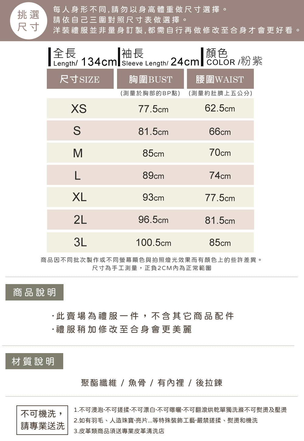 一字領V領光澤感粉紫色長禮服(手工款)19-7505