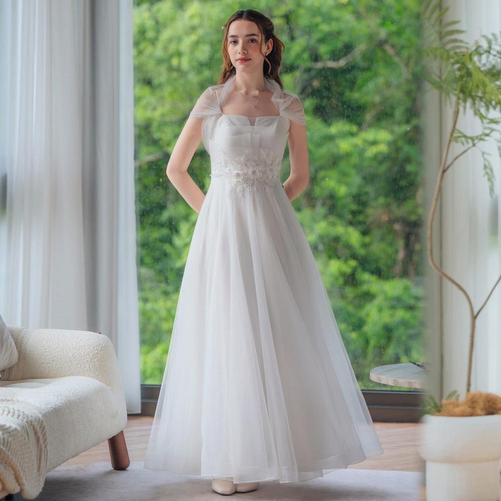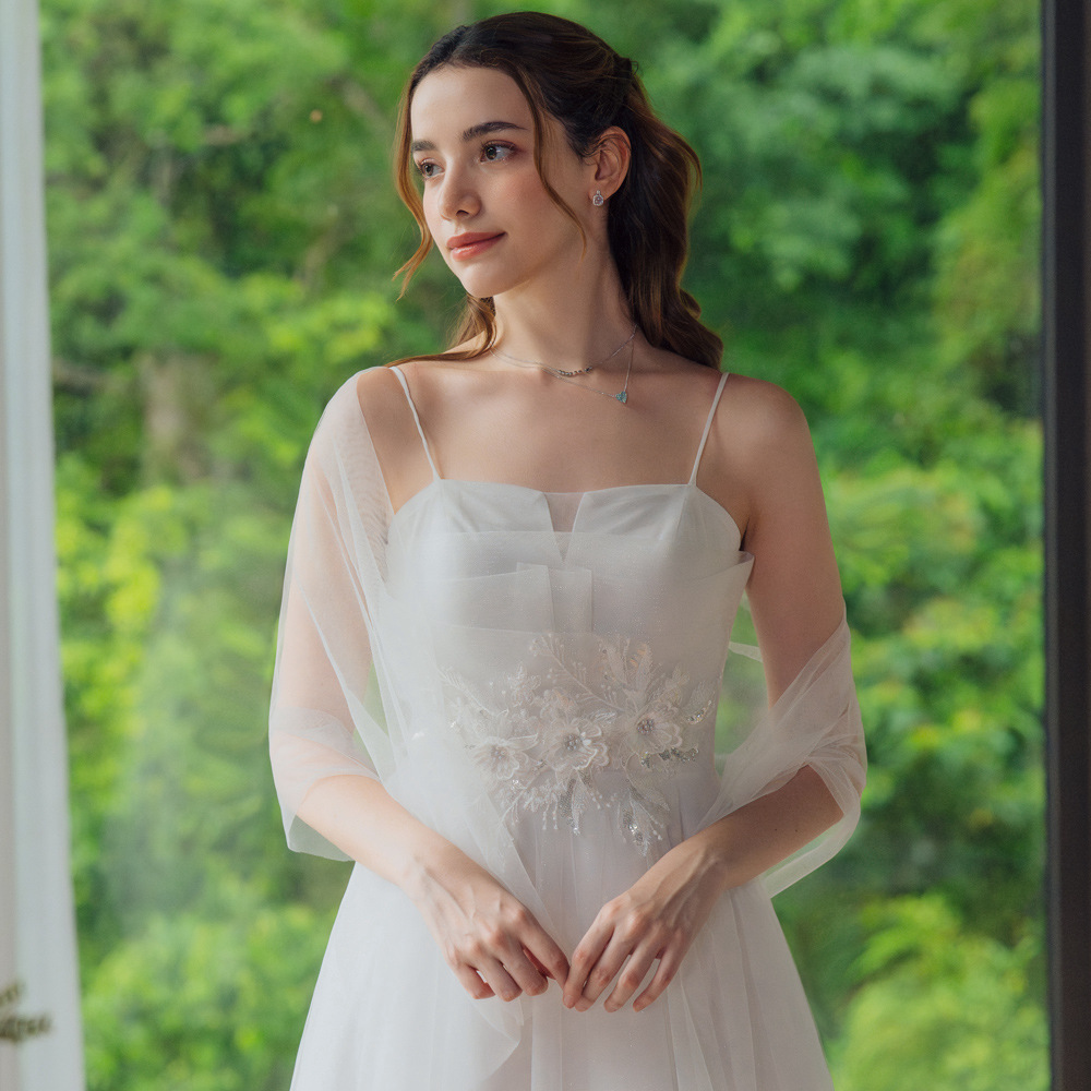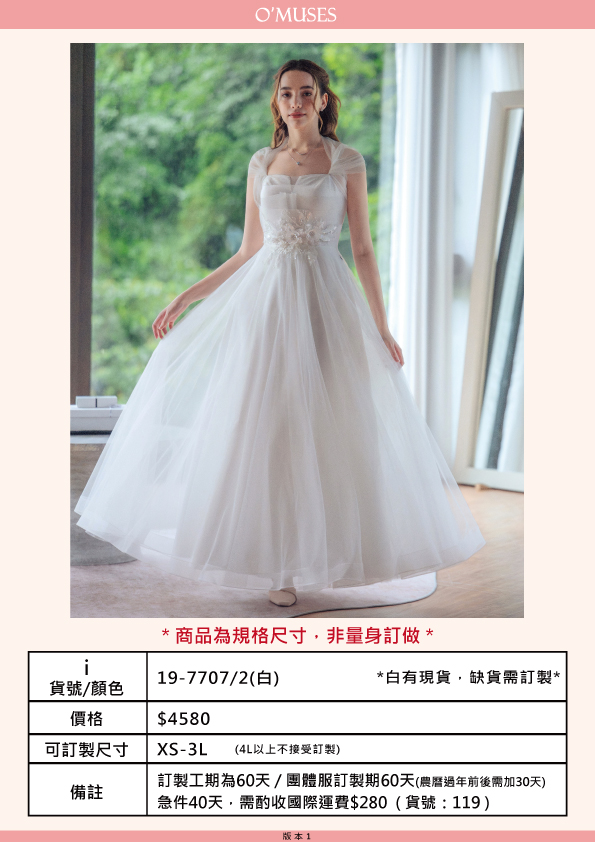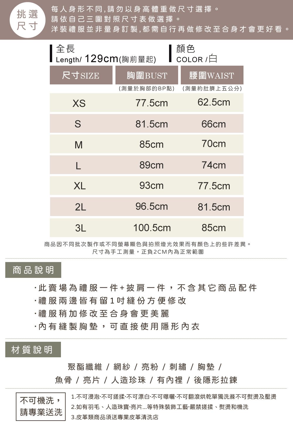 兩件式夢幻輕婚紗白色長禮服(手工款)19-7707
