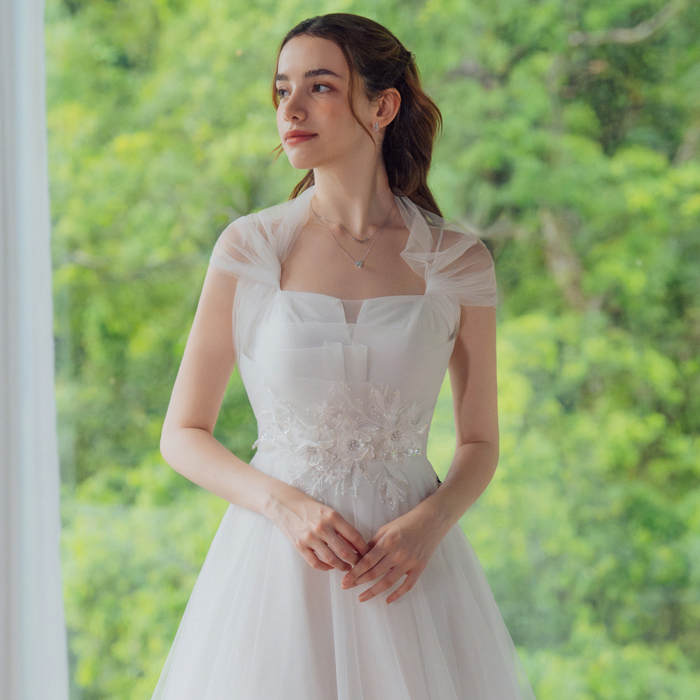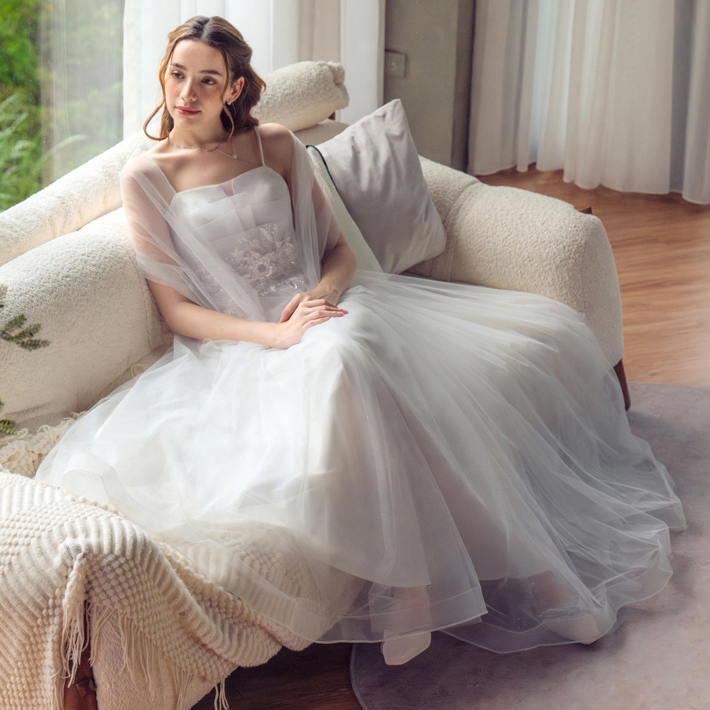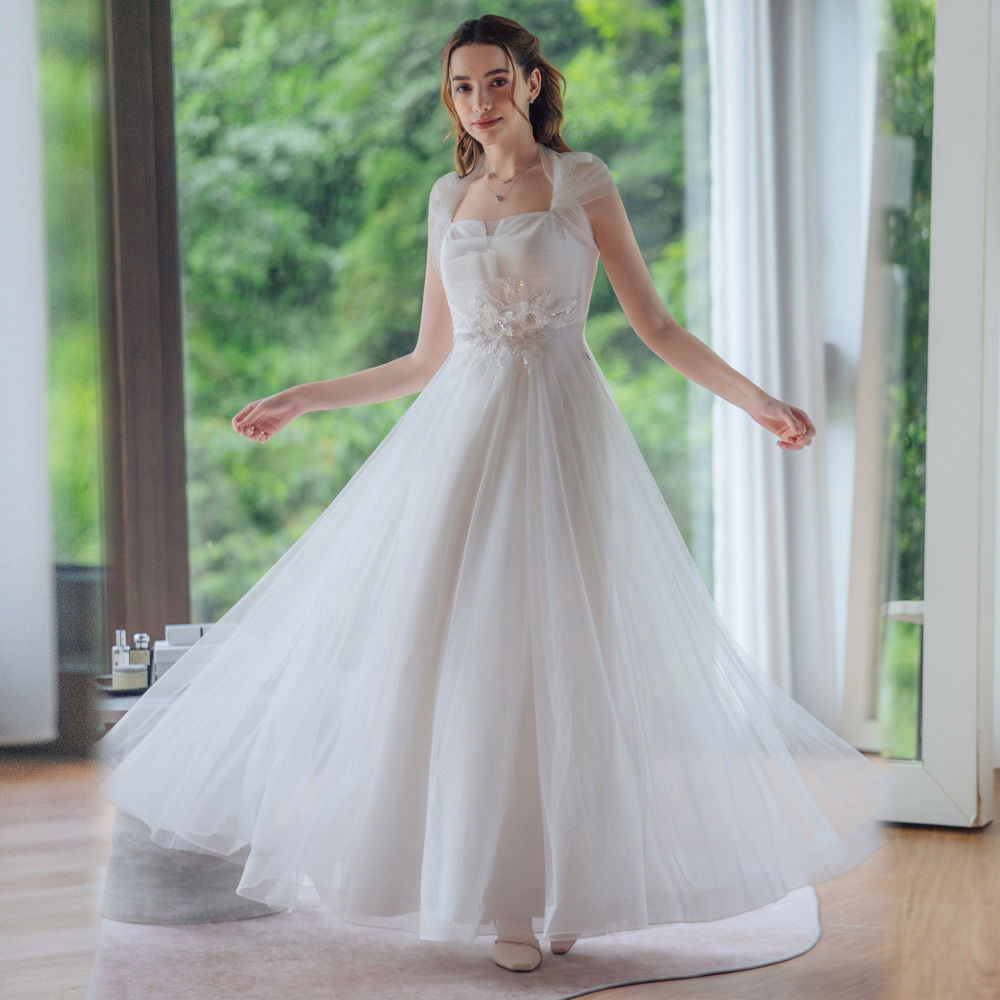 兩件式夢幻輕婚紗白色長禮服(手工款)19-7707