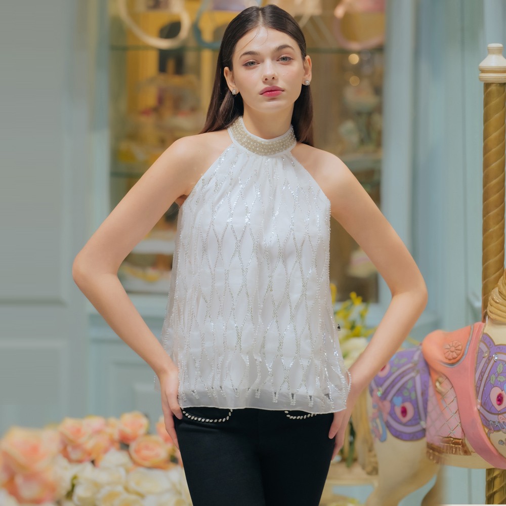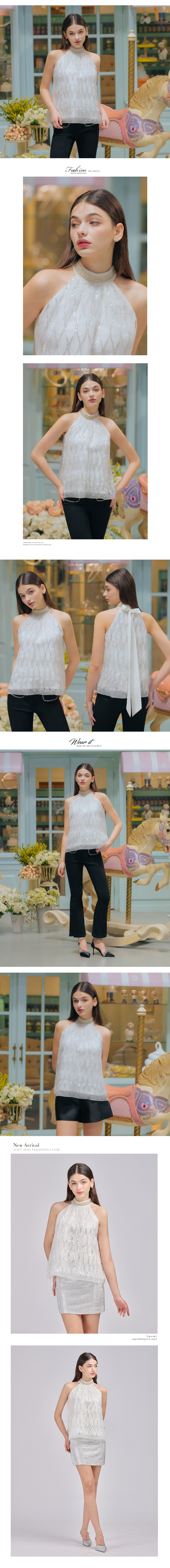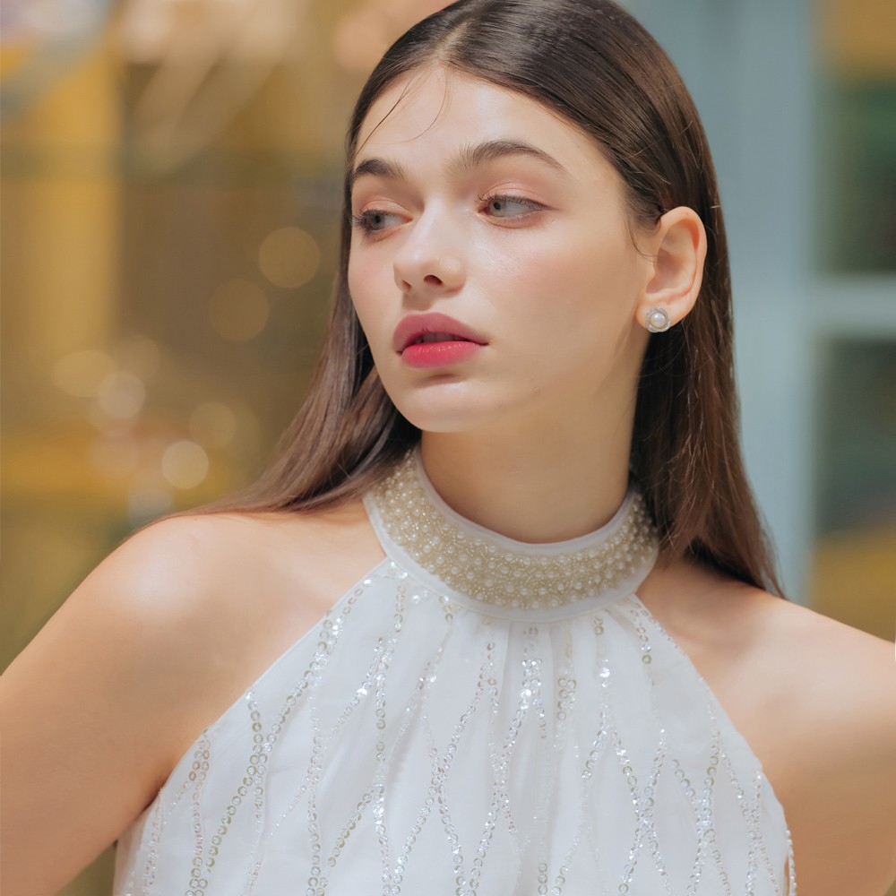 手工歐根紗亮片白色禮服上衣12-C009-1