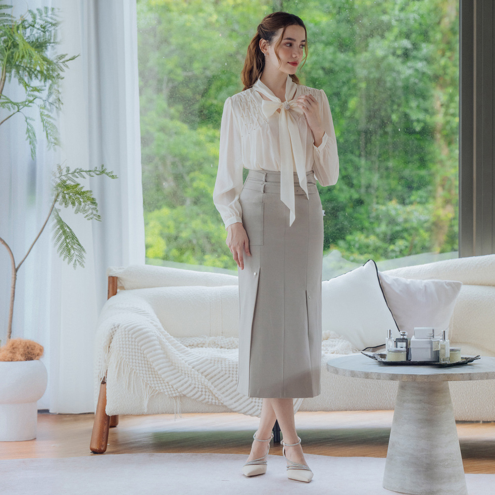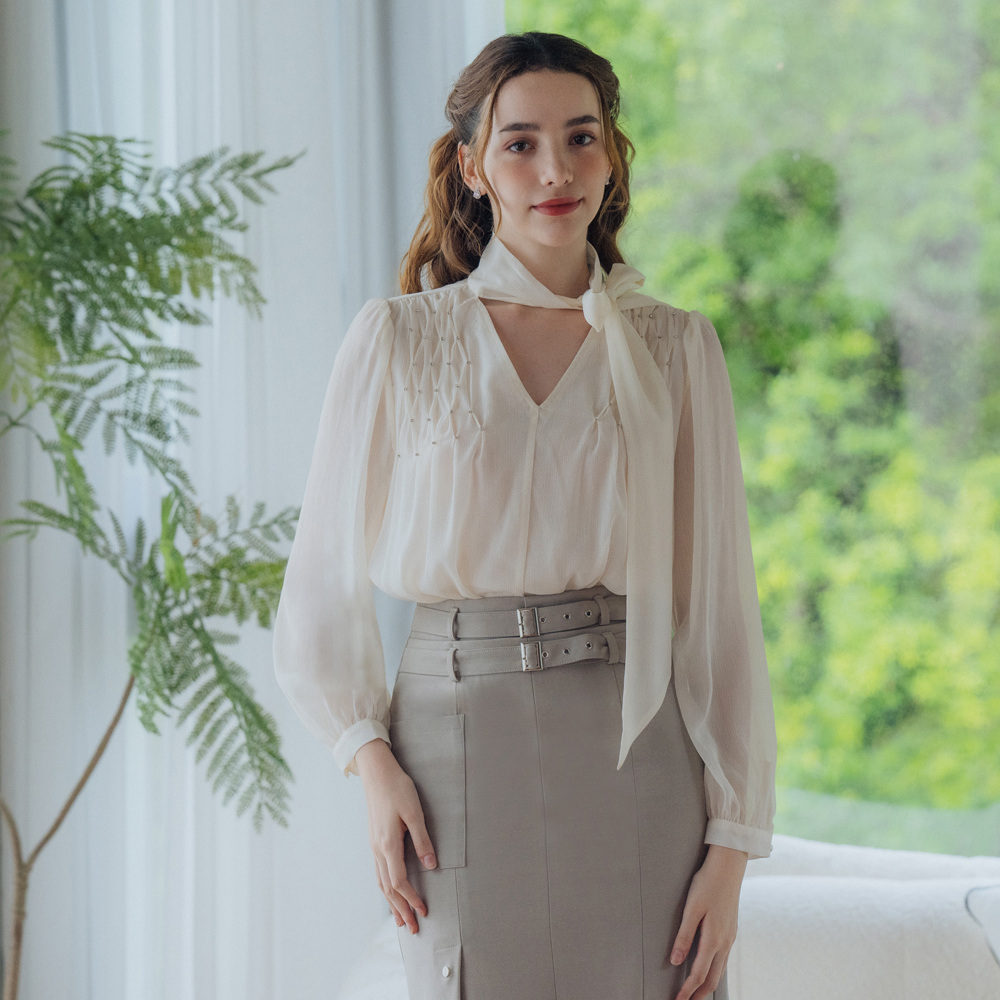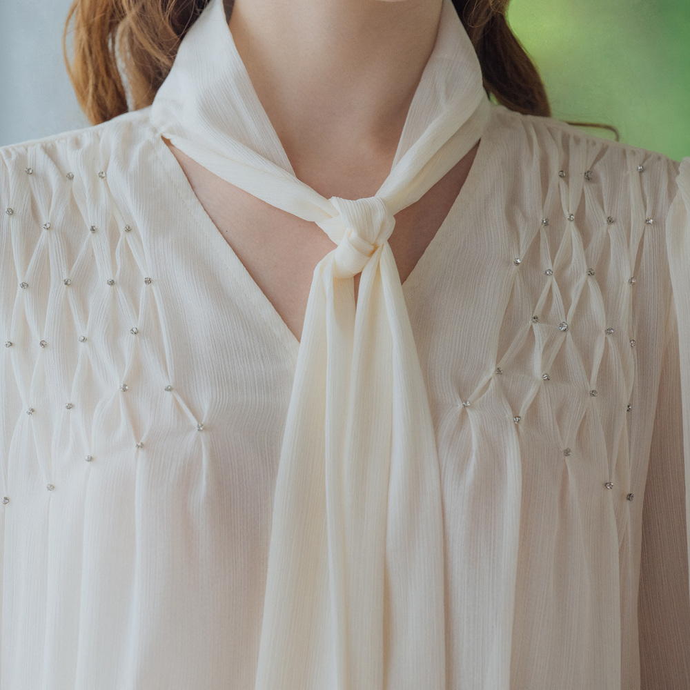 蕾絲亮片刺繡白色禮服上衣12-2521